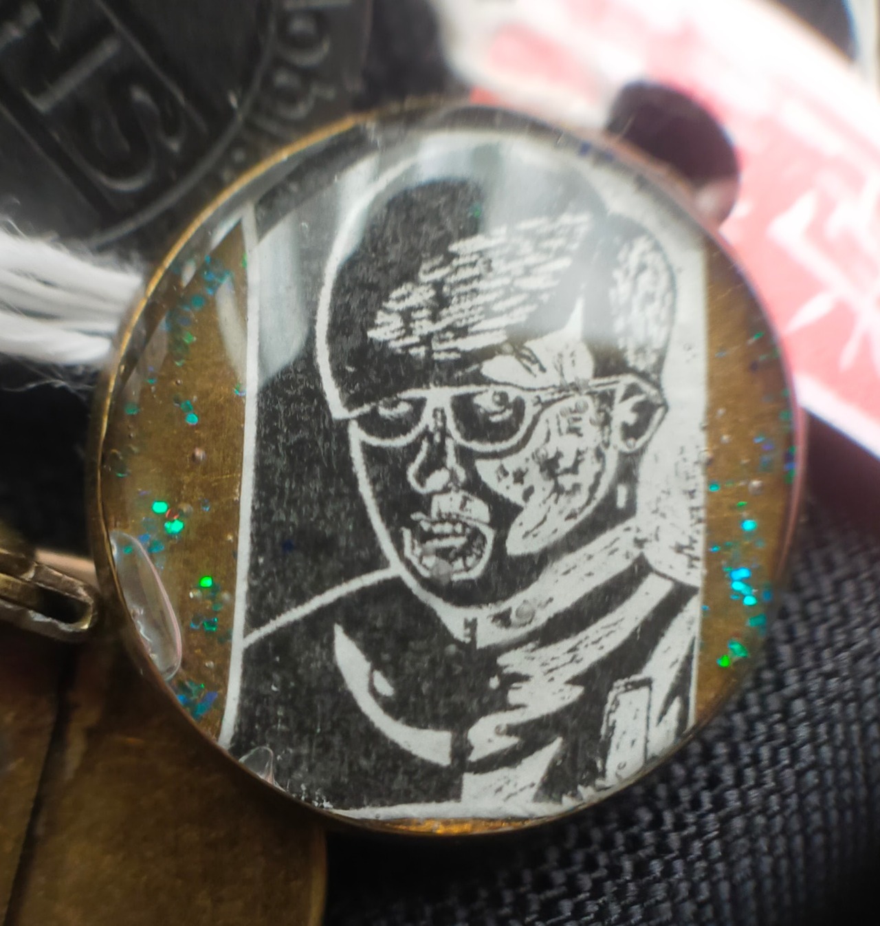 店主が中学2年時代美術の授業で同じクラスの栗原君をスケッチの上版画にした作品